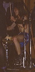 A rarity of rarities, a full body shot of Kerryn behind the drums.
