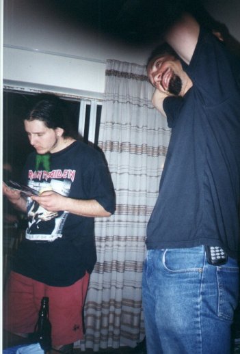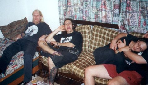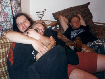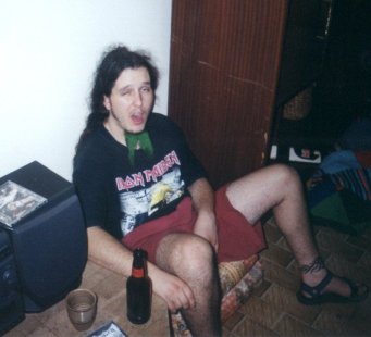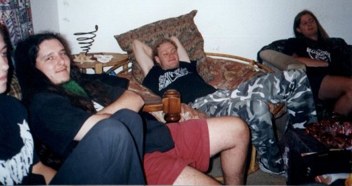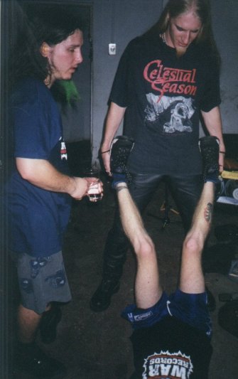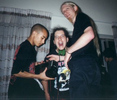 Stef with his trademark green goatee, & in the background there's Ronnie (Grämlich drummer) to his left & Colin (Grämlich photographer) to his right.