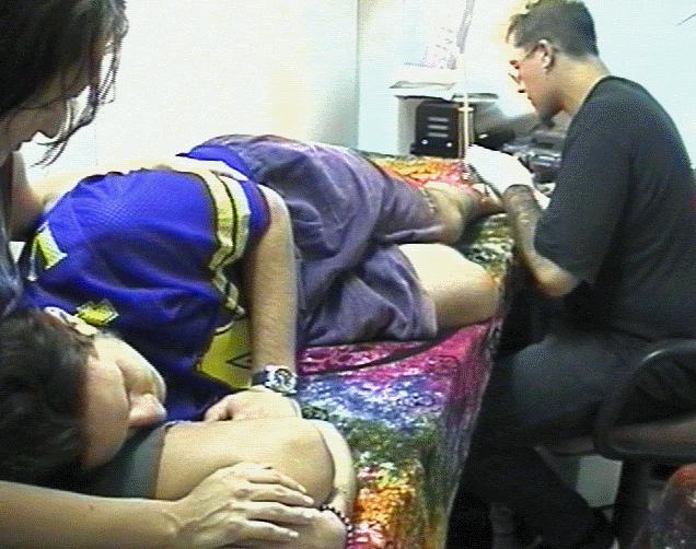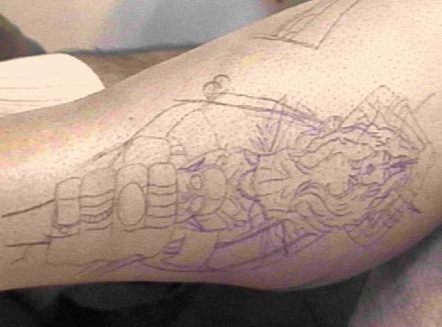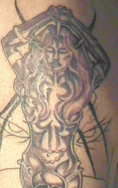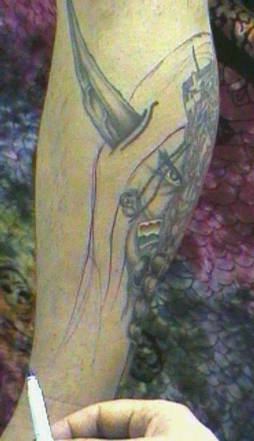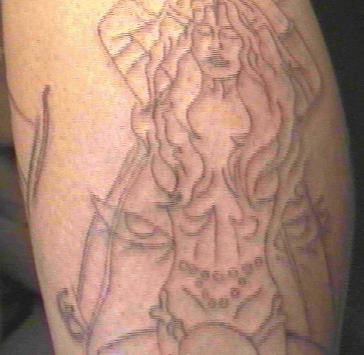 Why I say in 'work in progress' is cos so far only four hours of work has been applied to the tattoo on the 10th of January 1998, & @ least another 12 or so hours will be needed to complete it.