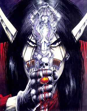 Here we have a work in progress. This is Marco's largest piece so far, & it is taken from the reprint of Drew Hayes' Poison Elves #1 (Sirius) [Not that JML's cover is bad, but Drew's is meaner].
