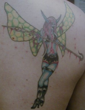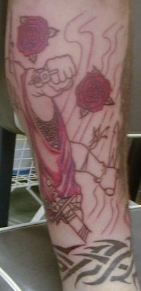 Stef's new PE piece started on the 10th of May 2000. This is what Ant (Phoenix Tattoos) managed to get done in 2 short hours.