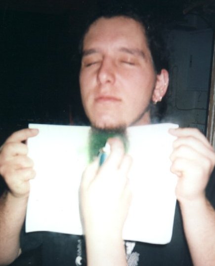 The killer pose of 'The Flatulent Trio'. That's Ronnie, drummer for 'Grämlich', standing in the doorway this time.